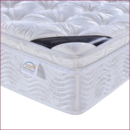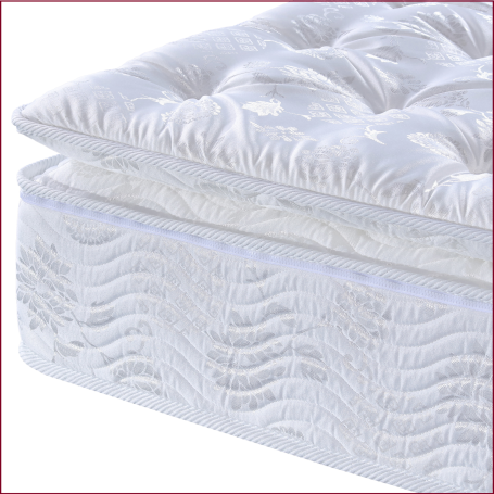 1. Hochwertig gesteppter Bezug aus Brokat mit integriertem Pillowtop